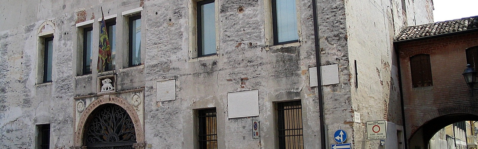 Palazzo Pretorio, nato dall’accorpamento quattrocentesco di due nuclei trecenteschi pre esistenti, assume le forme attuali nel 1483, con l’arrivo di Roberto di Sanseverino a cui Venezia dona Cittadella in feudo. Scomparso il Sanseverino, nel 1503 Venezia dona la città a Pandolfo Malatesta.