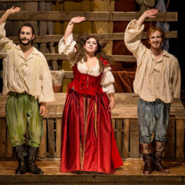 Venezia, 1574. Girolamo Salimbeni e Giulio Pasquati, sopravvissuti all’inquisi- zione, ripiegano sul poco onorifico mestiere dei saltimbanco… ma finalmente giunge, inaspettata, l’occasione per riscattarsi. Recitare per Enrico III, futuro Re di Francia, nientemeno che la più grande e tragica storia d’amore di tutti i tempi: “Romeo e Giulietta”. Ed ecco comparire nel campiello Veronica Franco, “honorata cortigiana” della Repubblica, disposta a cimentarsi nell’improbabile parte dell’illibata giovinetta. Si assiste dunque a una “prova aperta”, dove la celeberrima storia del Bardo prende forma e si deforma nel mescolarsi di trame, dialetti, canti, improvvisazioni, suoni, duelli e pantomime in un crescendo di “drammatica”, inesauribile comicità.